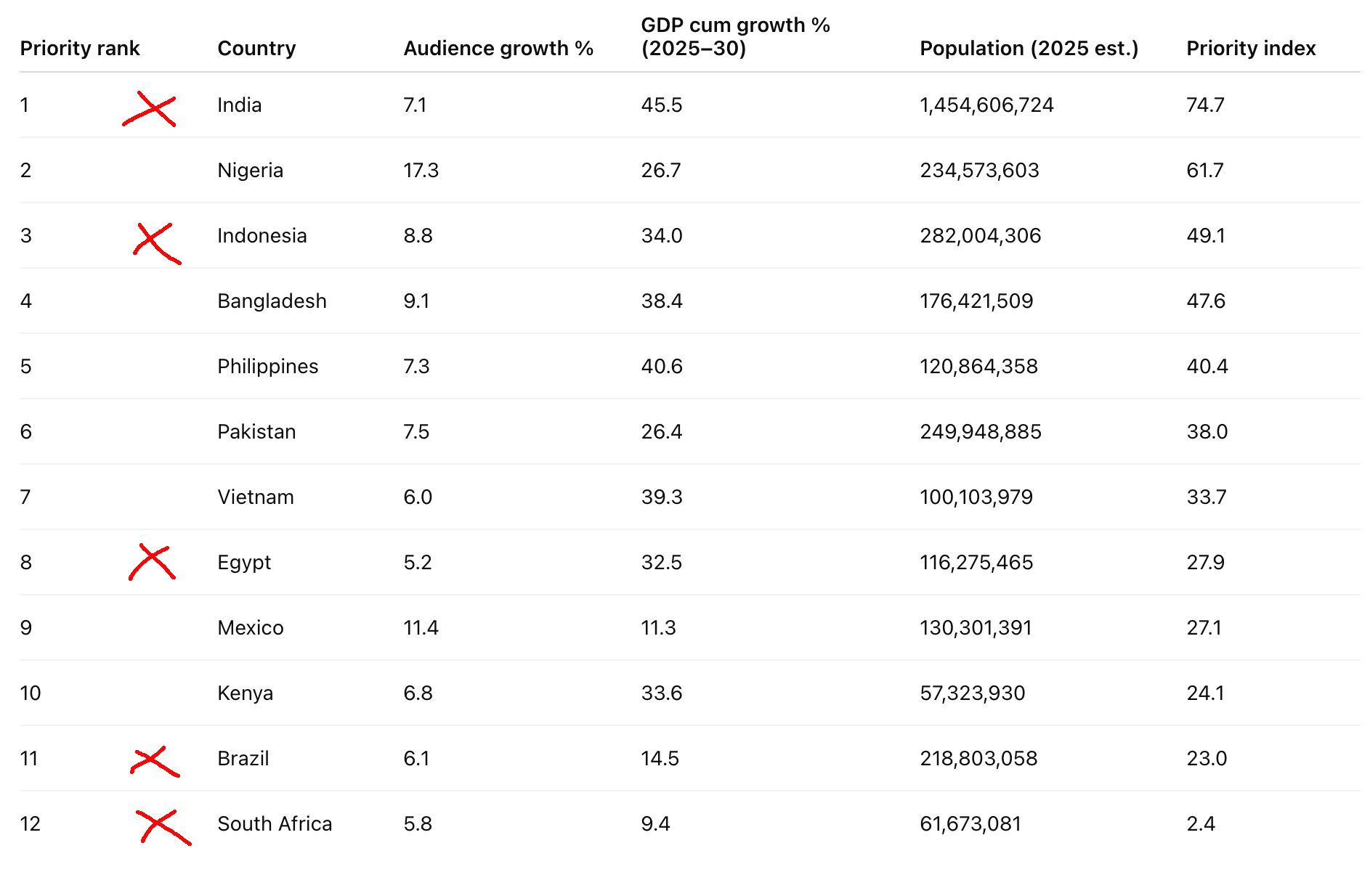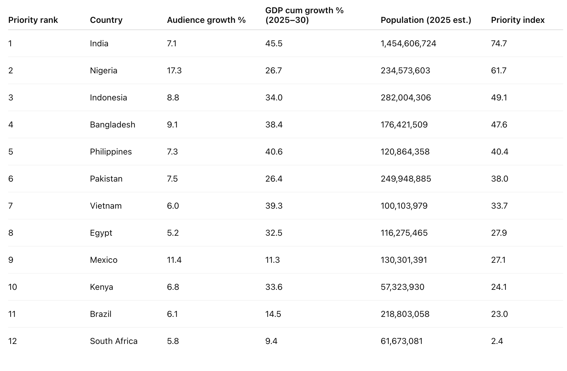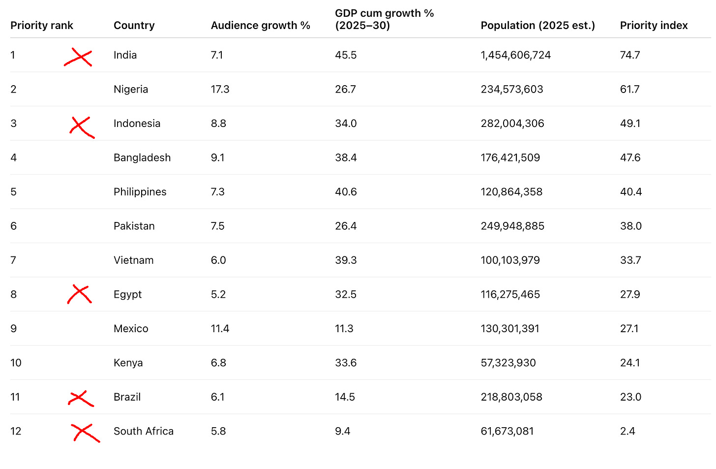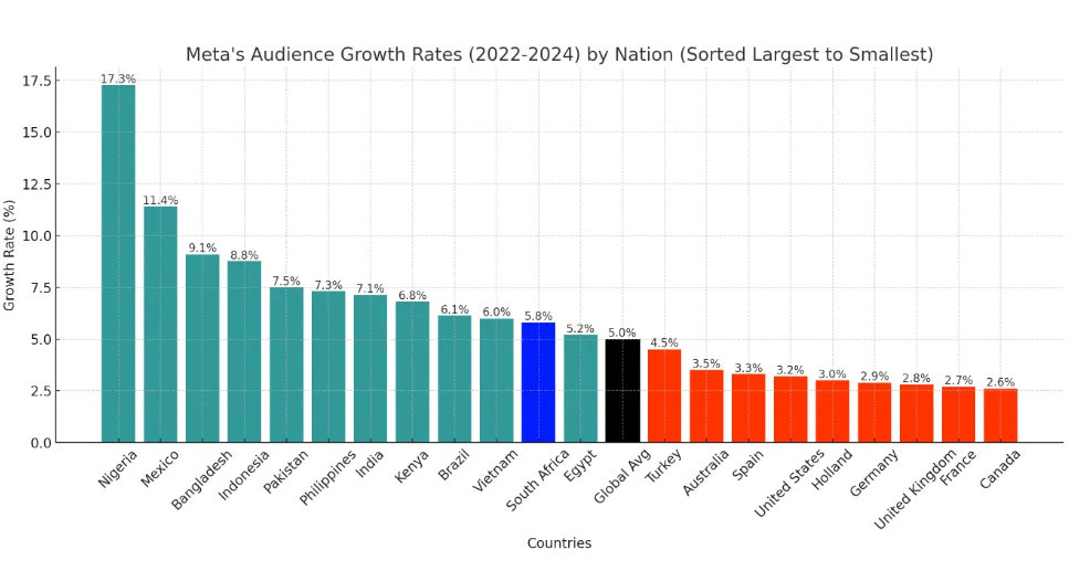 If you cross-reference Meta’s fastest growing markets with the largest populations, a strategy begins to emerge.